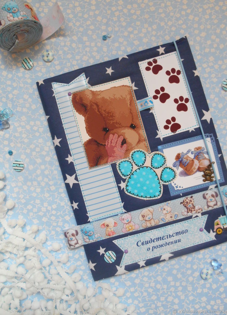 подарок на новый год, подарок на день рождения, подарок новорожденному, подарок на любой случай, темно-синий, папка ручной работы, подарок на крестины, подарок на крещение, папка для свидетельства, папка для документов, свидетельство о рождении, хранение документов, купить подарок ребенку, текстильная папка, папка для мальчика, подарок новый год 2018, снилс полис медицинский, папка медвежонка