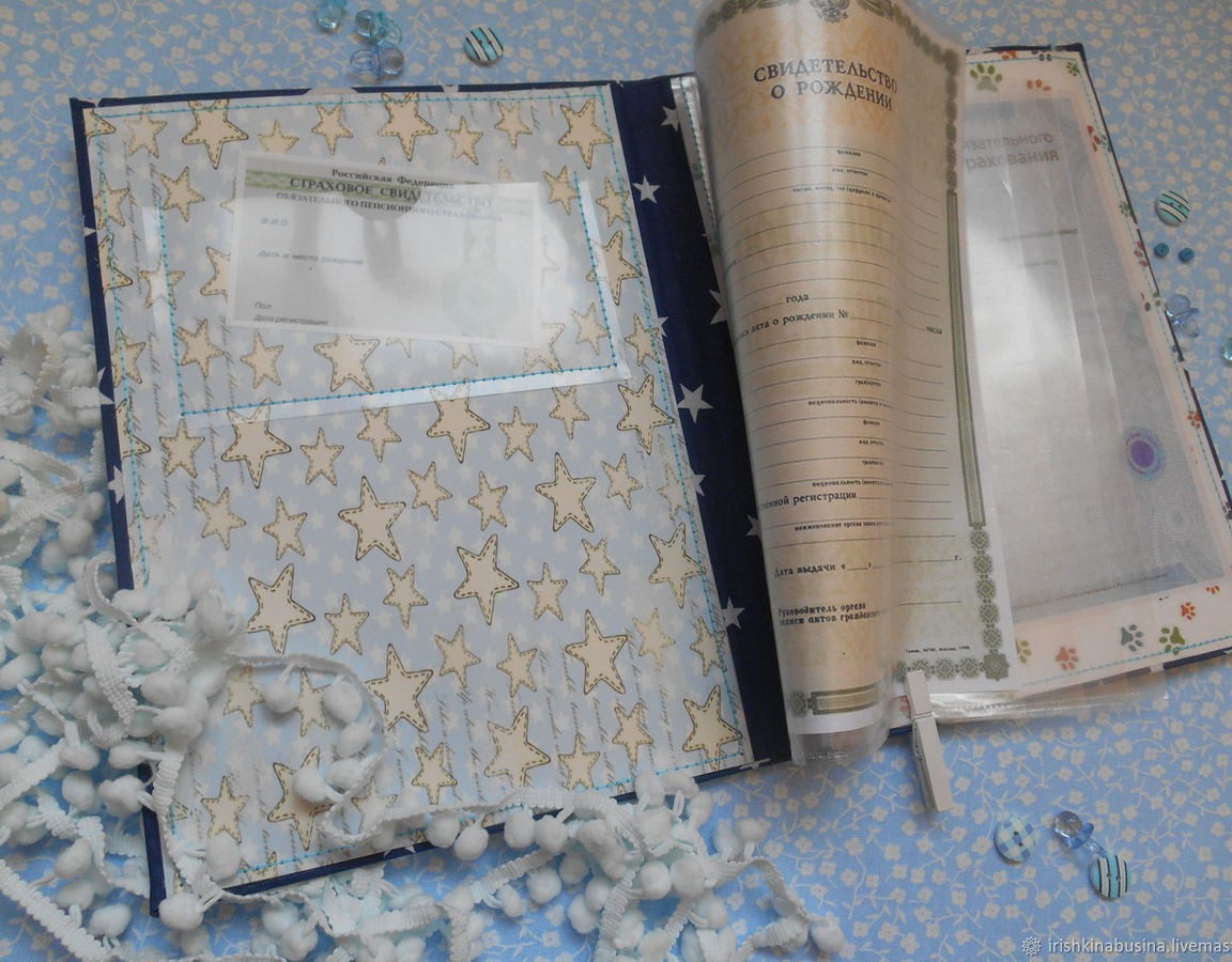 Папка для свидетельства о рождении и других документов:СНИЛС, страховое свидетельство, разрешение на вывоз детей др. у всех возникает проблема куда положить документы на хранение и перевозка в путешествии. В этой папочке всё будет на месте. Оригинальный дизайн приведет в восторг других, увидевших её у вас. Выполнена из хлопка, прошита по всем сторонам. Украшена картинками и фурнитурой, удобна в обращении. Имеет несколько карманов разного размера. Приятная на ощупь и на вид. Отличный подарок для ребенка(для мальчиков и девочек).