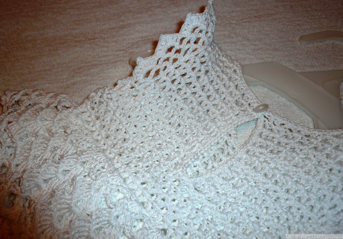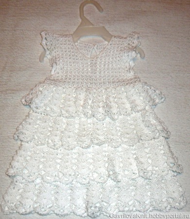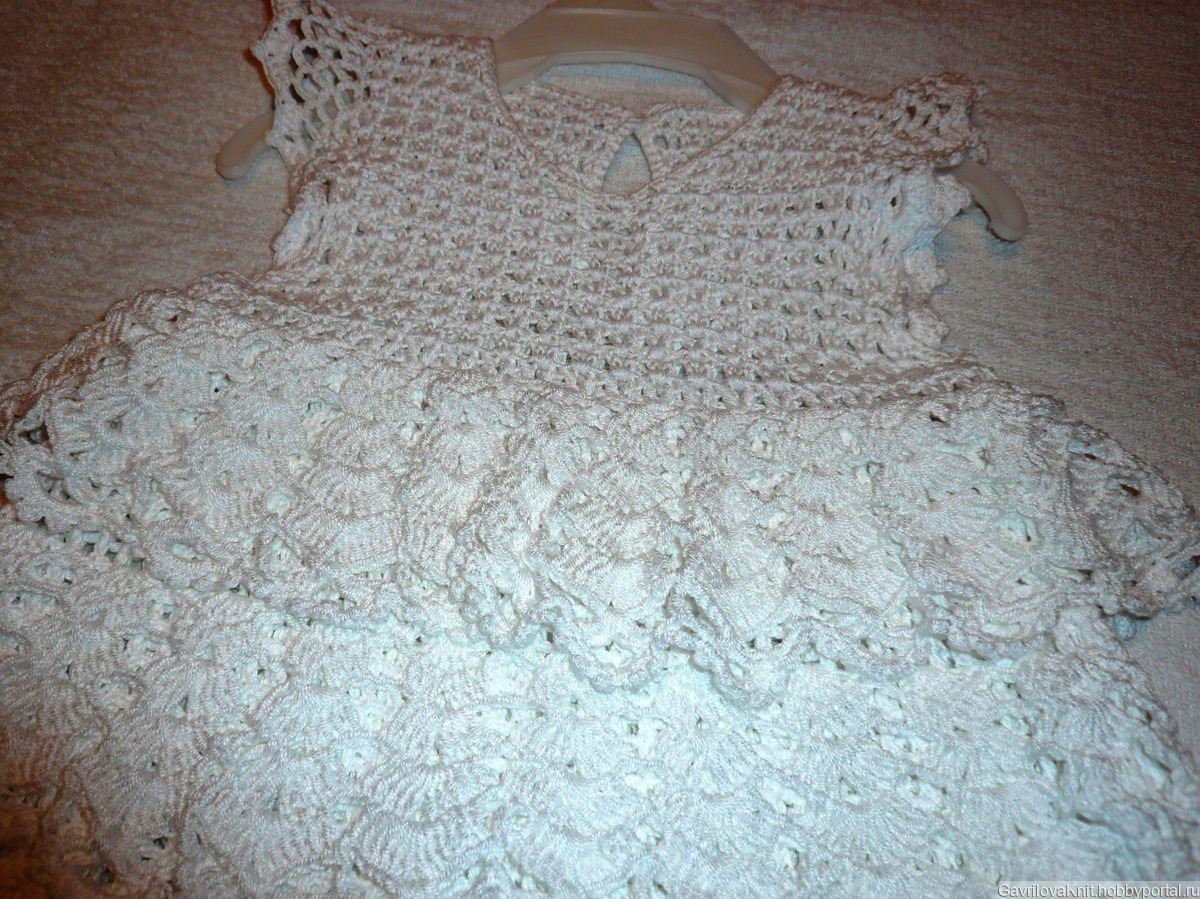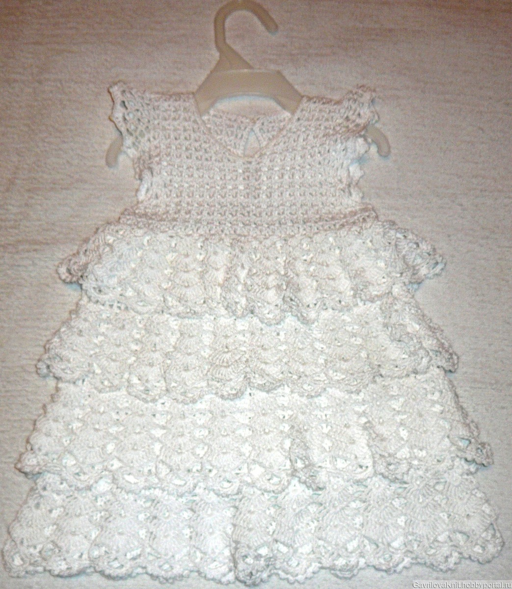 Белоснежное платьице с оборочками для маленькой красавицы. Связано крючком из хлопковых ниток.