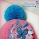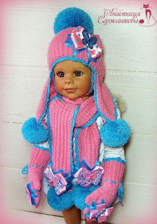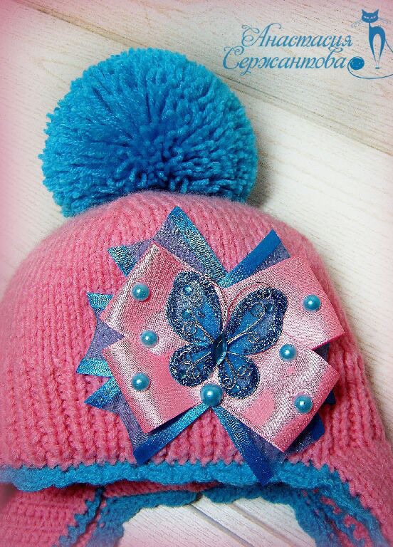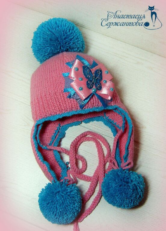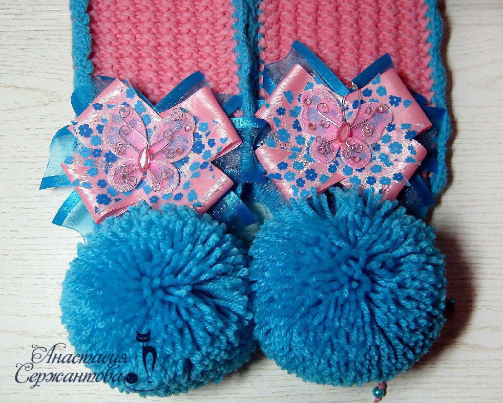 для девочки, бирюзовый, ручная работа, розовый, демисезонный комплект, бабочки, вязаная шапка, на весну, на зиму, варежки вязаные, комплект вязаный, на осень, вязаный шарф, шапка с помпонами, анастасия сержантова, Шарф с помпонами