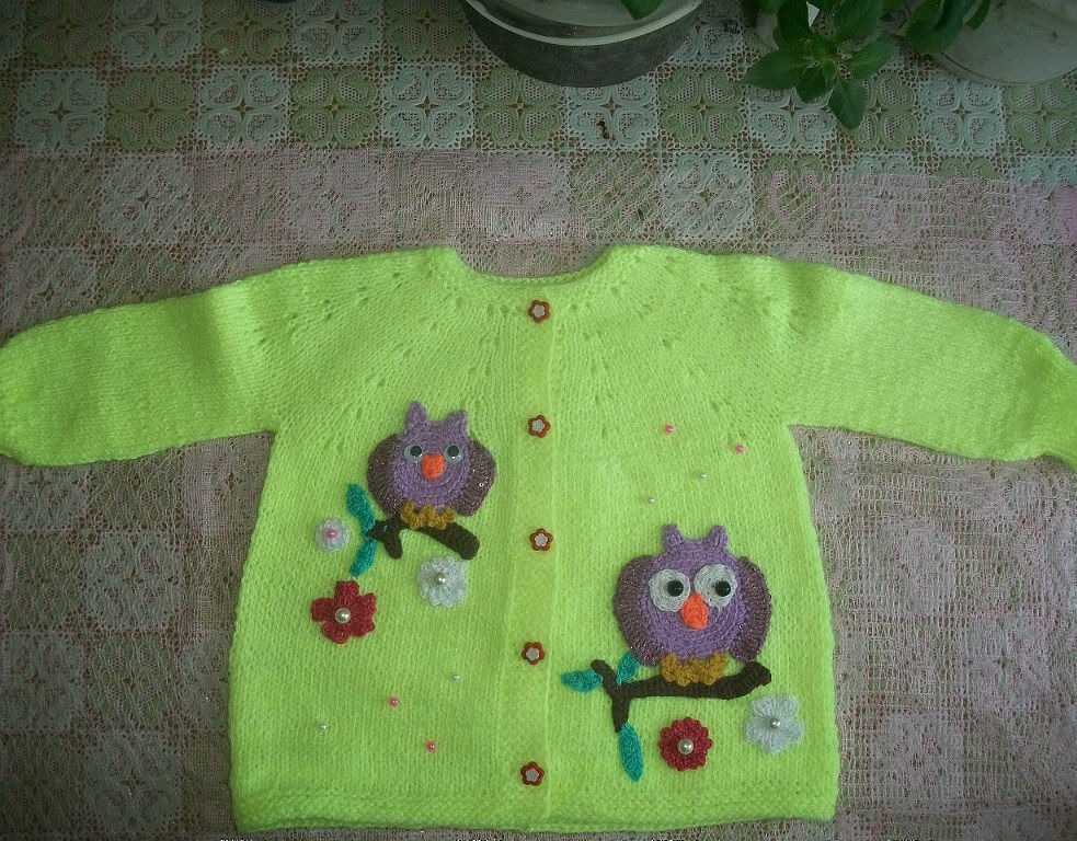 Детская кофточка "Совушки" связана безшовным способом что очень важно для малышей.аппликация связана крючком. размер и цвет по вашему желанию. Авторская работа. точное повторение невозможно.