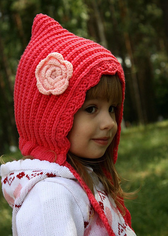для девочки, осенняя шапочка, детская шапочка, детский капор, шапочка капюшон, детские шапки, капор с цветком, шапочки с цветком, вязанные шапочки, шапки спицами, шапочки для фотосессии, шапочки на осень, шапочки на весну