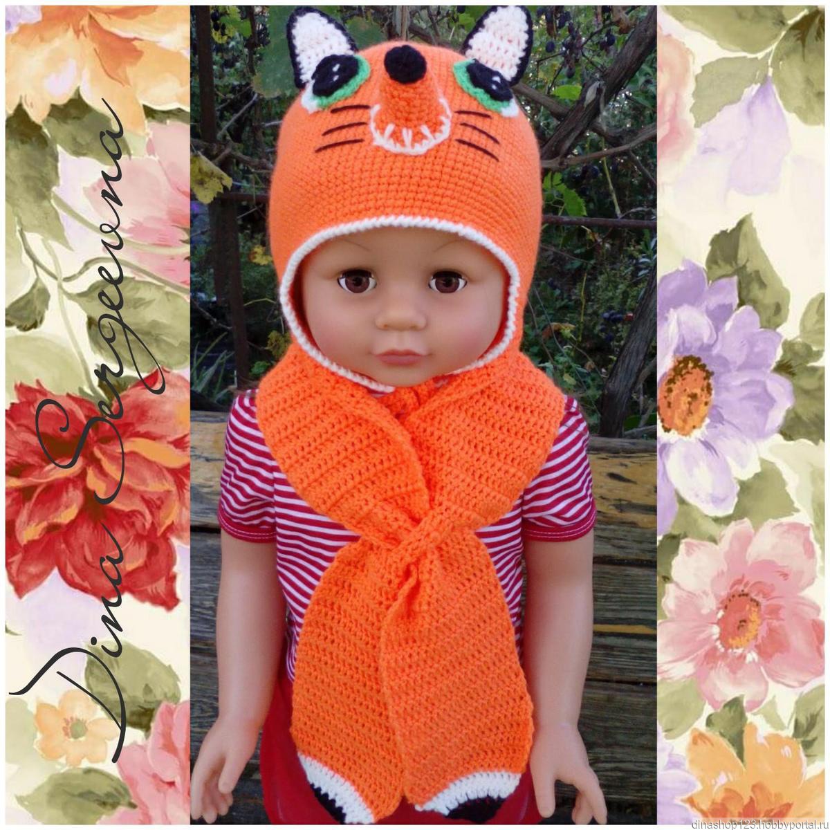шапка вязаная, комплект для девочки, шапочка вязаная, шапка для девочки, зверошапка, шапочка для малышки, лисичка крючком