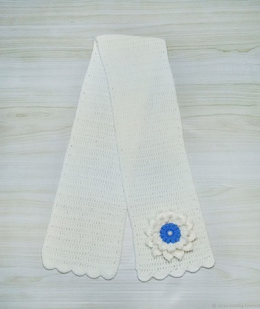 На заказ. Цена будет зависеть от состава пряжи. Красивая теплая шапочка для девочки белого цвета, выполнена крючком из мериносовой шерсти, теплая и мягкая, с большим объемным цветком. А также в комплекте длинный шарф с шикарным цветком.