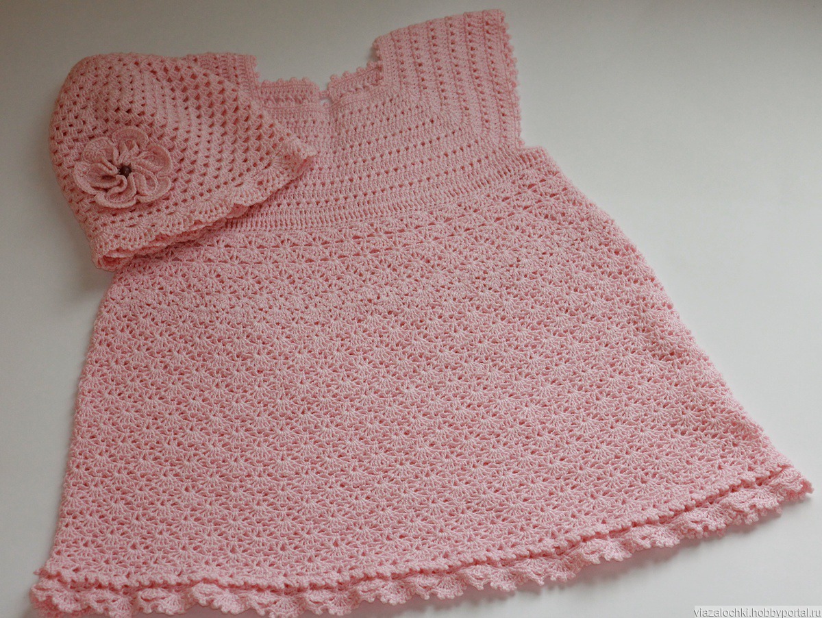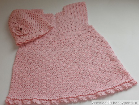 Платье для девочки ручной работы (пряжа - хлопок 100 %, крючок) на ОГ до 50 см, ширина по линии груди регулируется шнуровкой