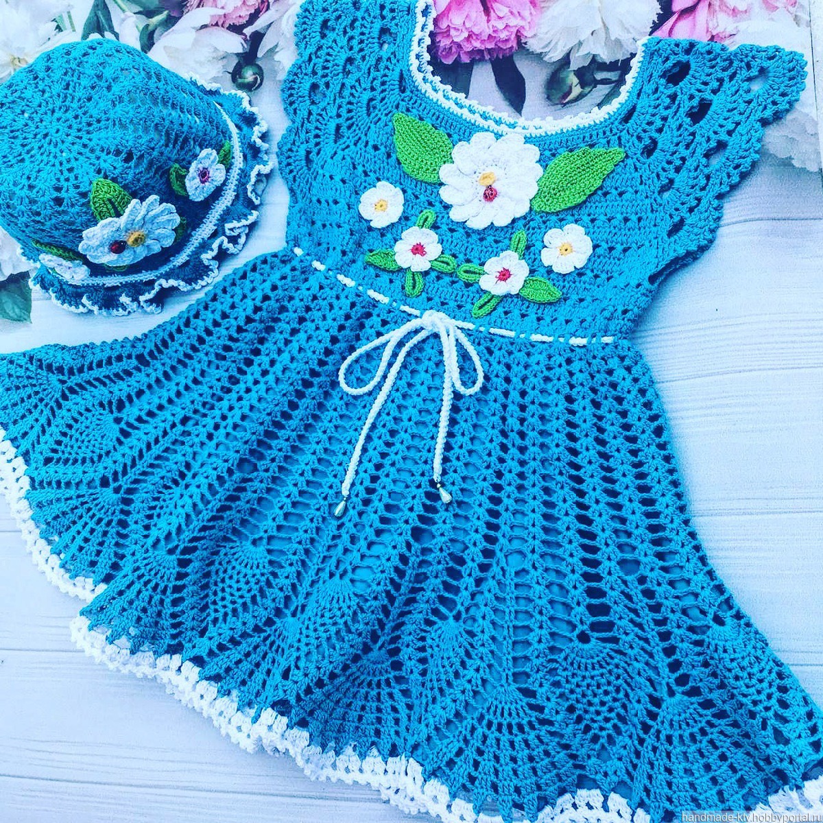 платье для девочки, платье крючком, платье вязаное, платье летнее