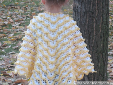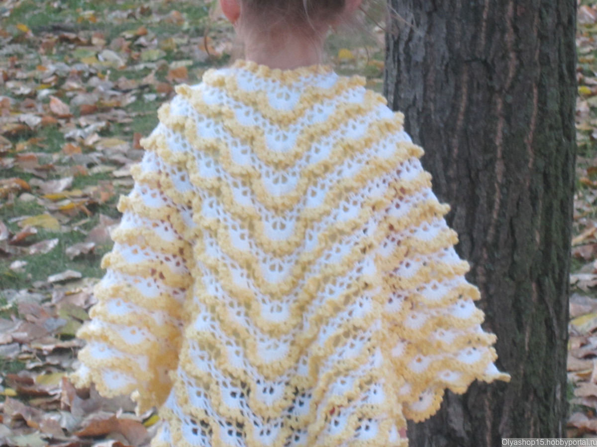 Красивое , кружевное пончо для девочки. Любого размера, любой расцветки из любой пряжи. Цена пончо зависит от материала и размера изделия. Вязано пончо рисунком веерочки. Цвета нежно постельных тонов. На фото образец на девочку 5-6 лет. Цвет шампань. Вязание пончо , любых размеров от маленьких до больших.