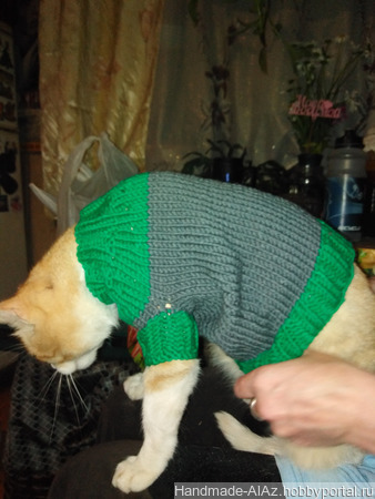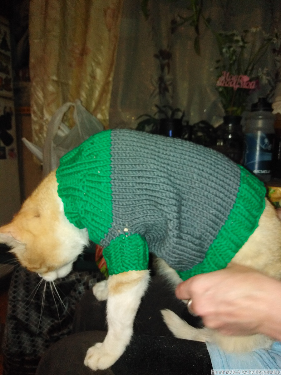 ручная работа, ручное вязание, свитер вязаный, свитер спицами, любимец, свитер для кота
