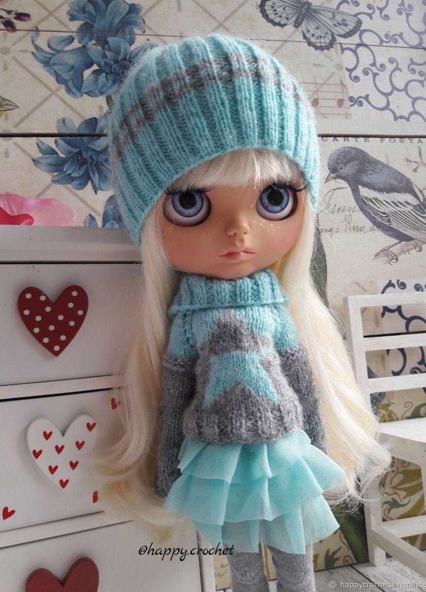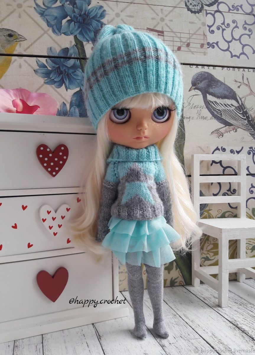 бирюзовый, одежда для кукол, блайз, одежда для блайз, свитер для блайз
