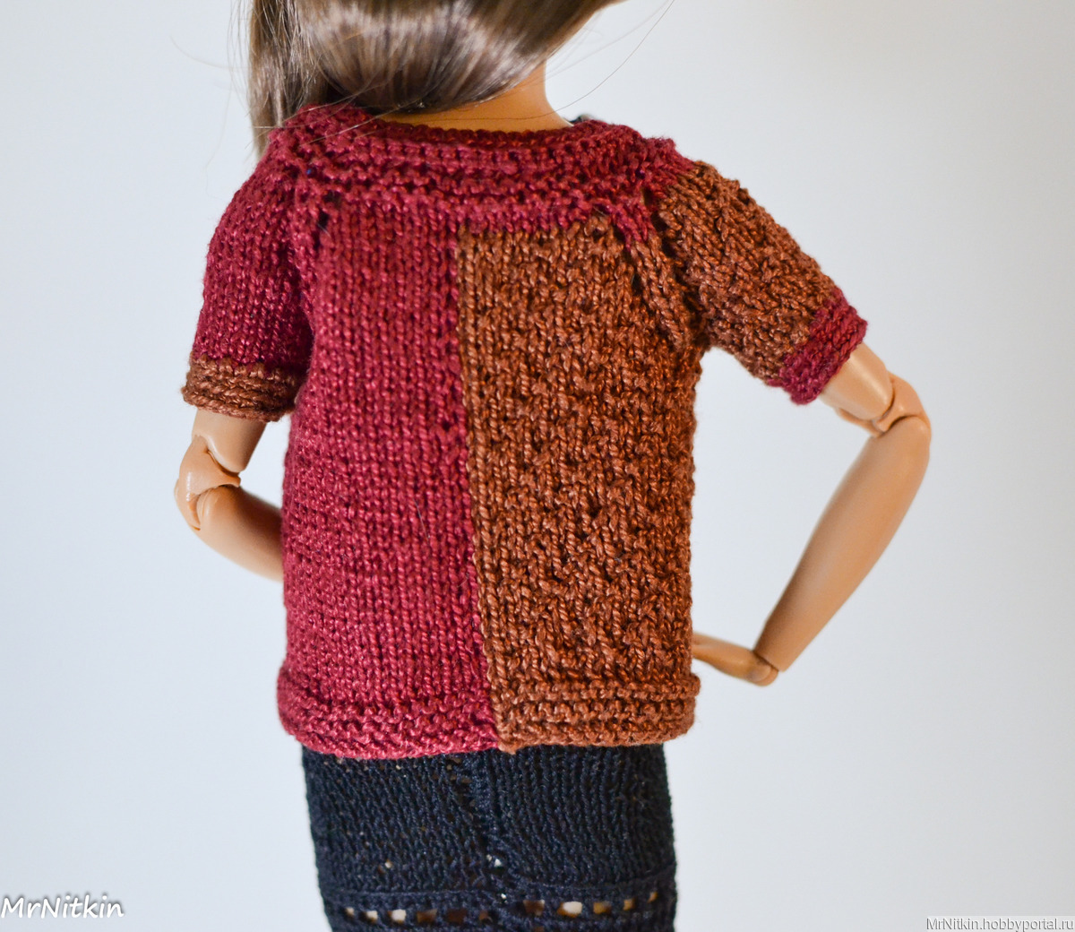 Кофта для Барби теплых оттенков с брошкой.
