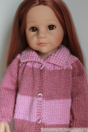 Кардиган связан на спицах, бесшовный, подходит куклам Gotz (Готц) и другим похожего размера