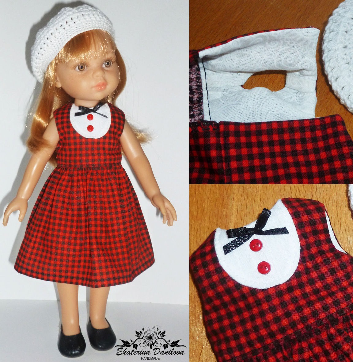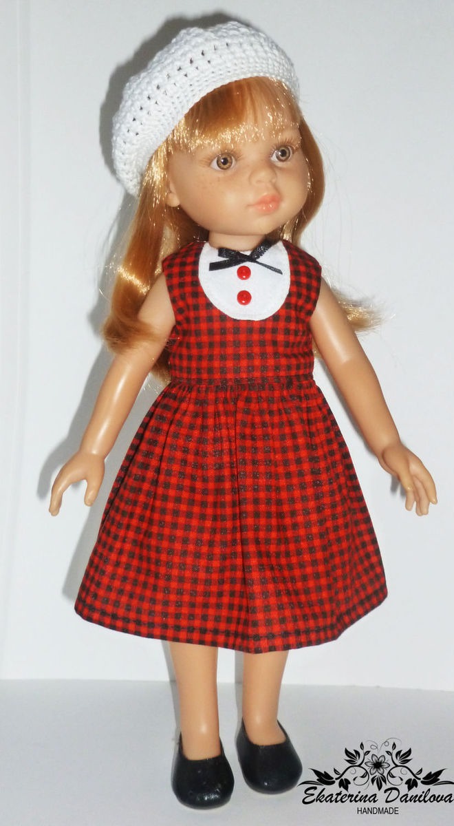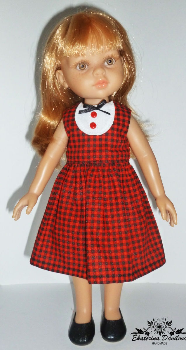 клетка, комбинированный, хлопок, платье для куклы, paola reina, паола рейна, платье для кукол, мерсеризованный хлопок