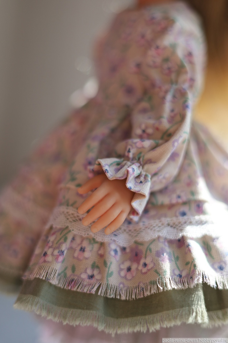 Платье, нижняя рубашка, панталоны, вязаная кофточка, вязаные манжетки, сумочка