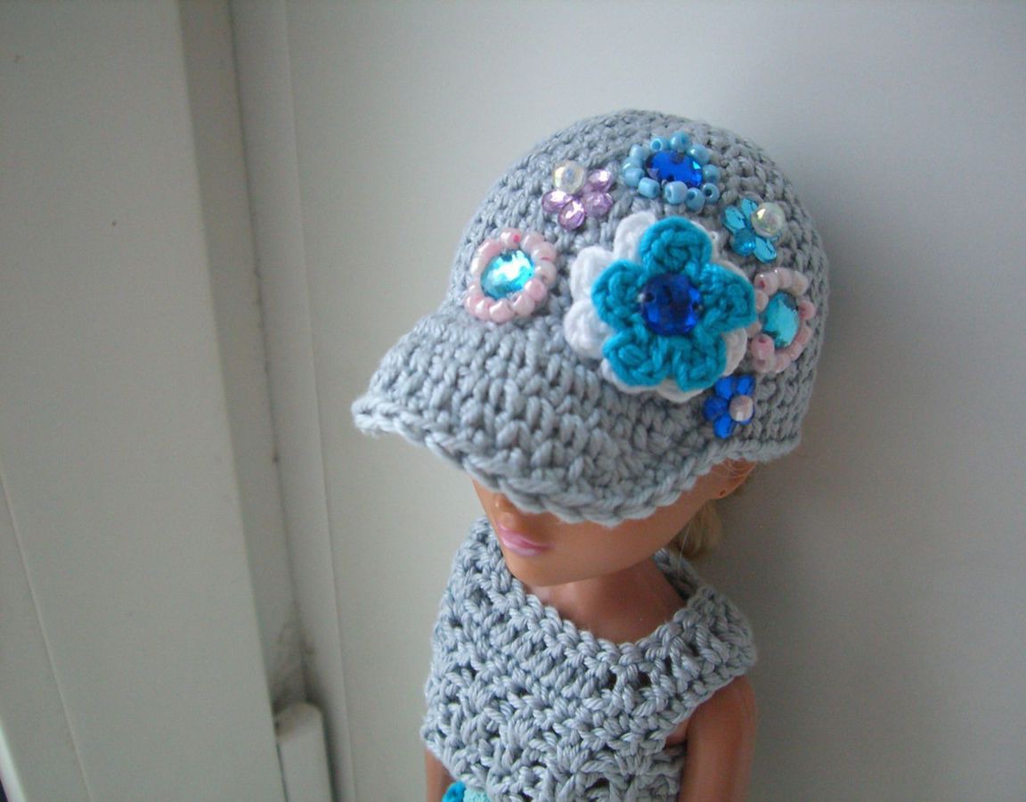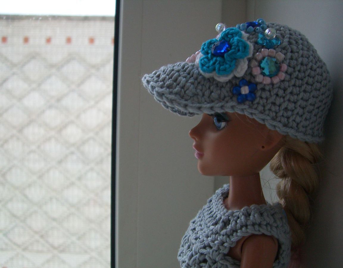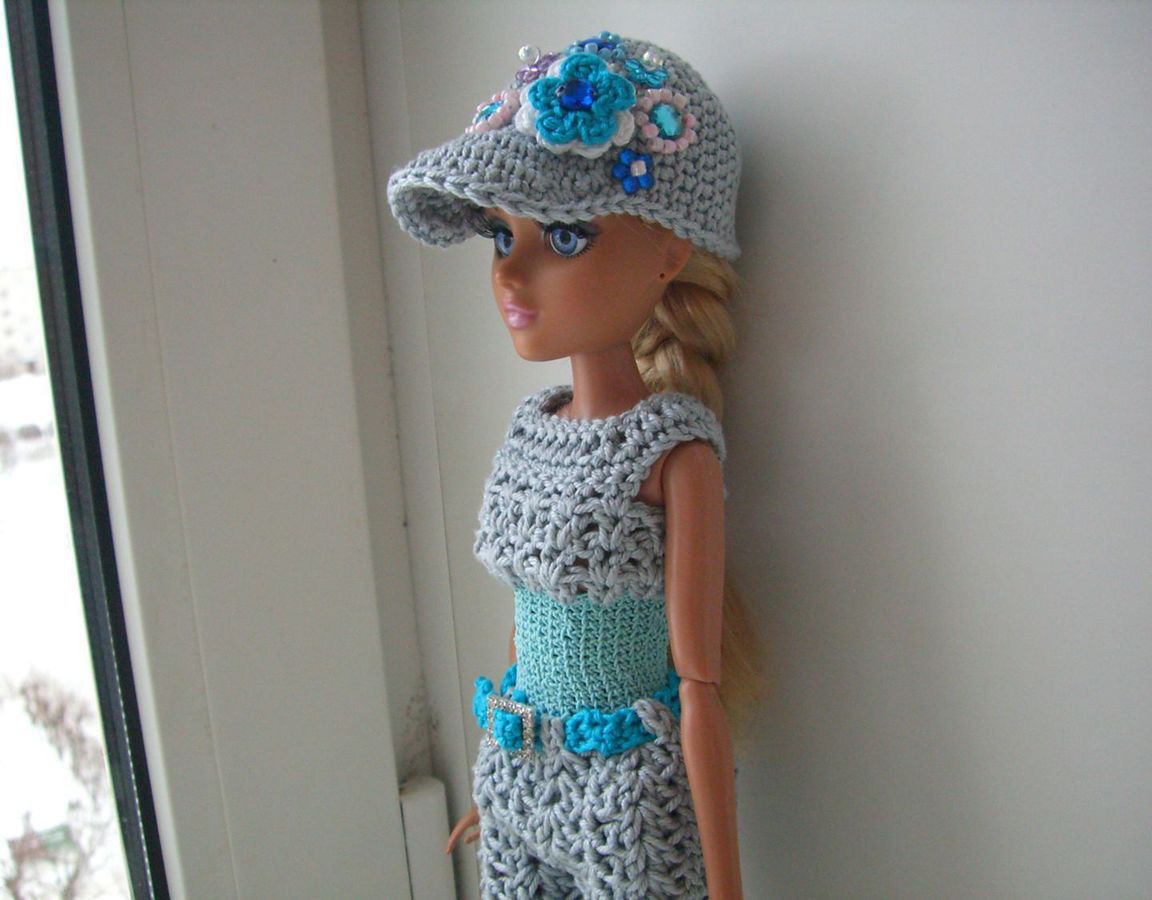 серый, кепка, одежда для кукол, комплект вязаный, комбинезон для куклы, комплект одежды, кепка крючком