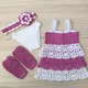 Комплект с сарафаном в цвете белый-светлый цикламен для baby born. Украшен стразами.