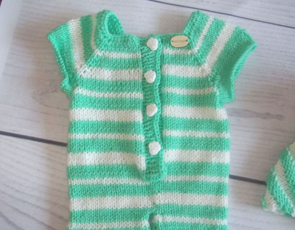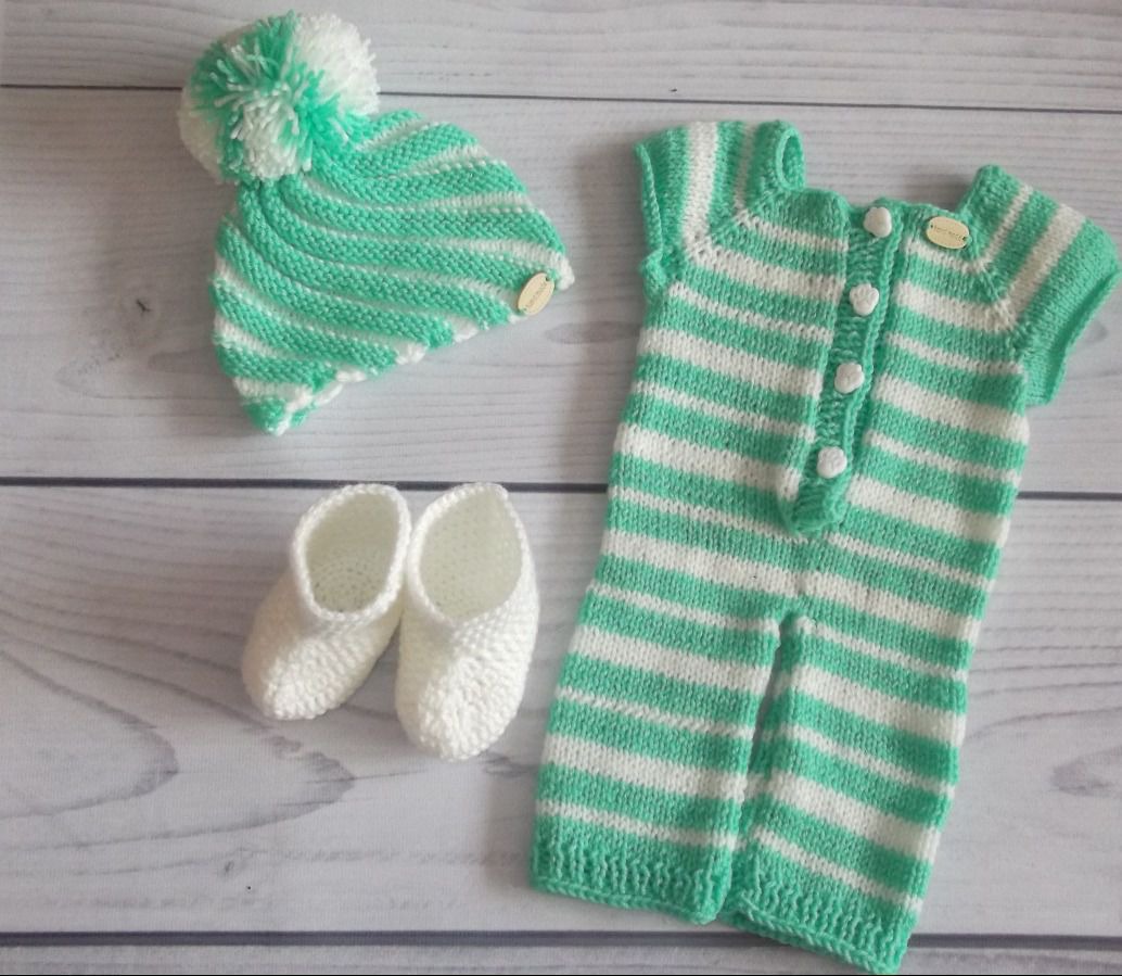 На шапочке и комбинезоне пришиты бирочки handmade.