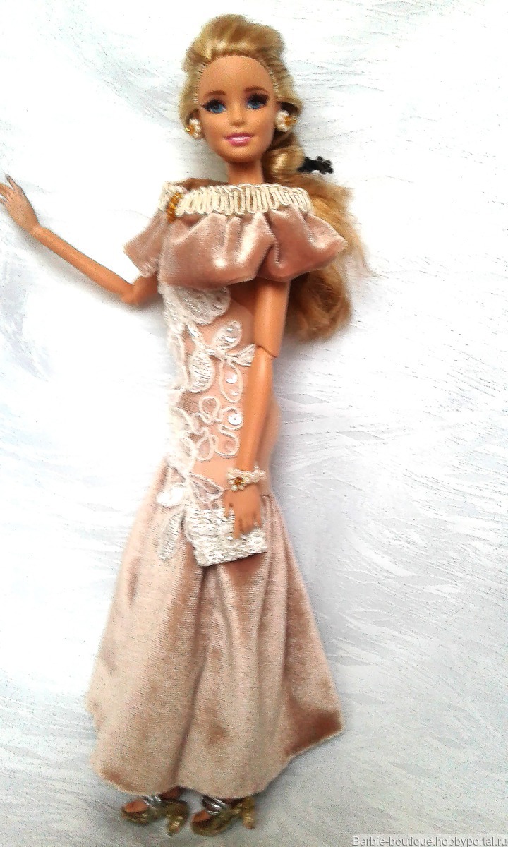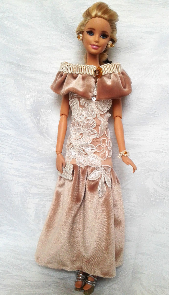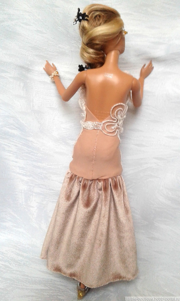 бежевый, одежда для кукол, аксессуары ручной работы, вечернее платье, наряд для куклы, аксессуары для кукол, наряд для Барби