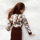 2. Трикотажная блуза с длинными рукавами с манжетами, воротником-стойкой и застежкой-липучками на спинке (сверху застежка украшена бусиной);