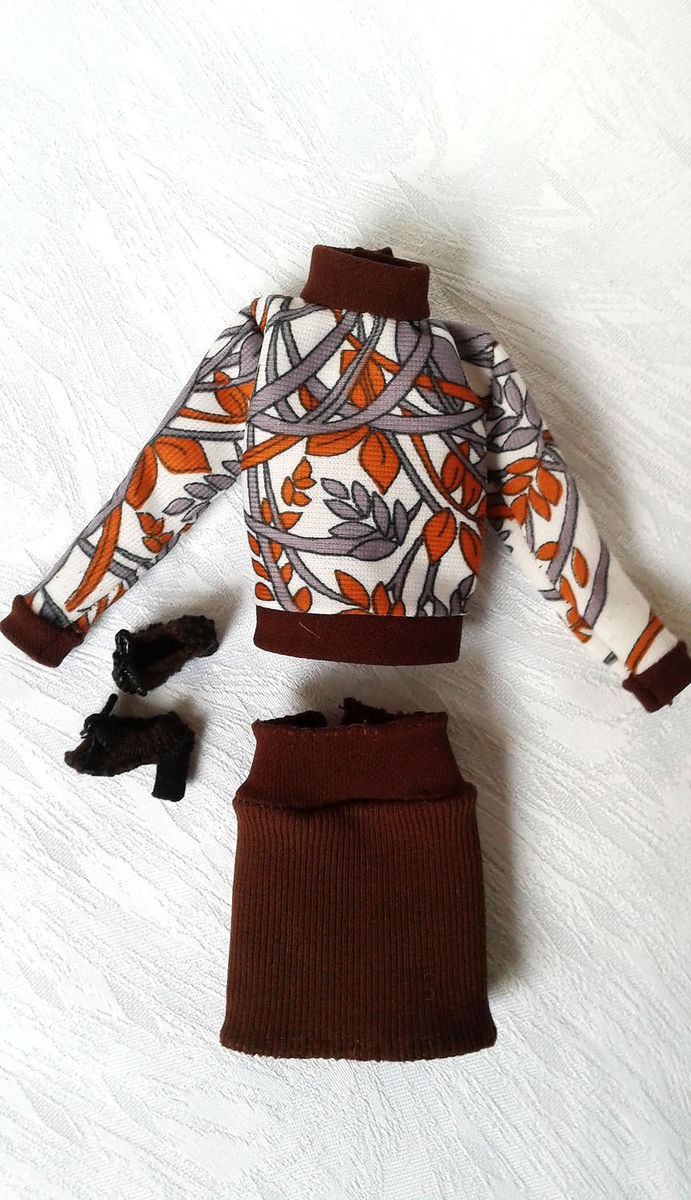одежда для кукол, коричневый, одежда для барби, юбка для куклы, трикотажная юбка, туфли для кукол, блузка для куклы, трикотажная блузка