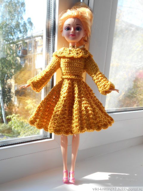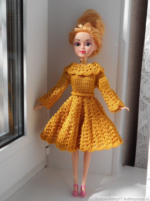 Очень мягкое и приятное на ощупь платье, связанное крючком. Сзади застегивается на кнопочку. Пояс с бусинками.