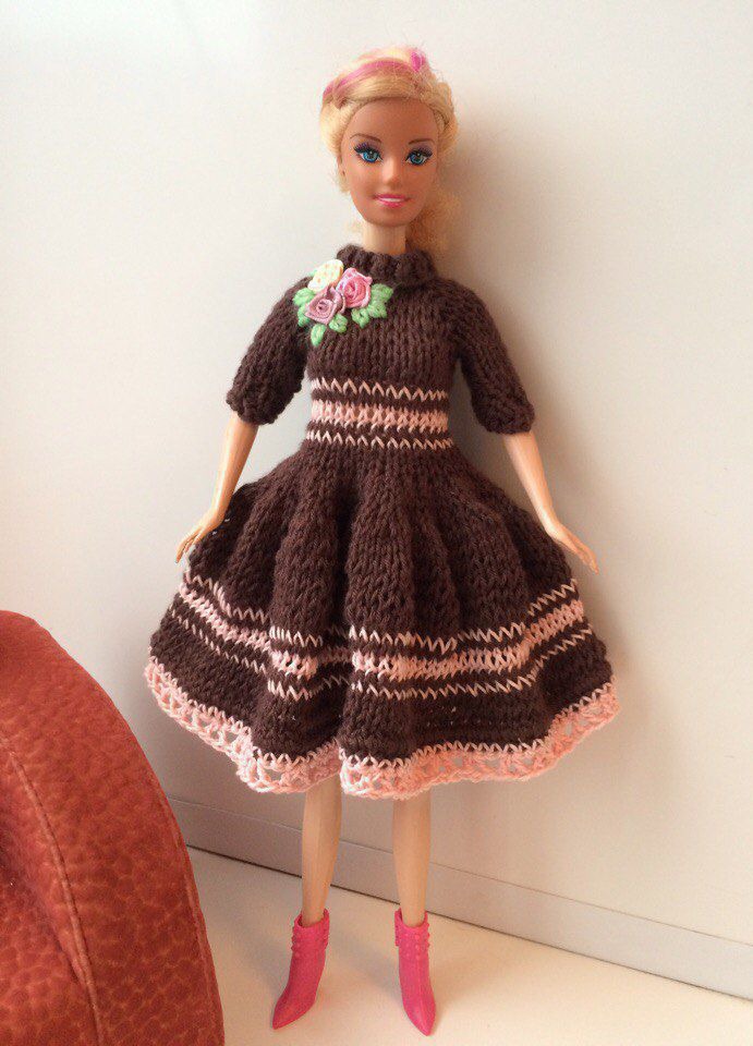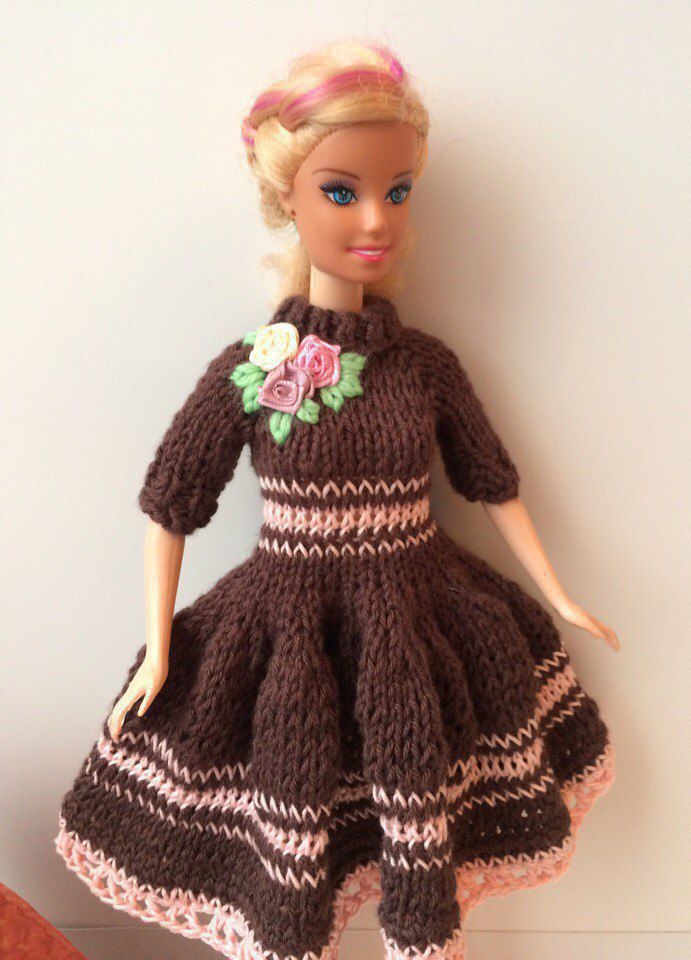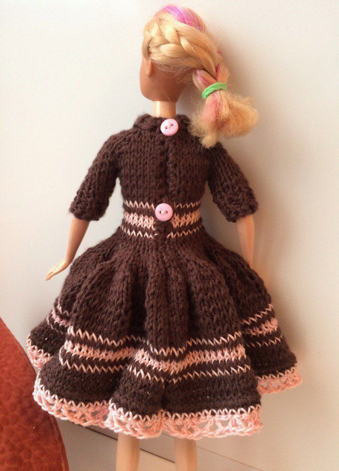 вязание на заказ, платье, одежда для куклы, одежда для кукол, коричневый, вязаное платье, платье вязаное, платье нарядное, платье для куклы, платье на заказ, платье для барби, одежда для барби