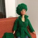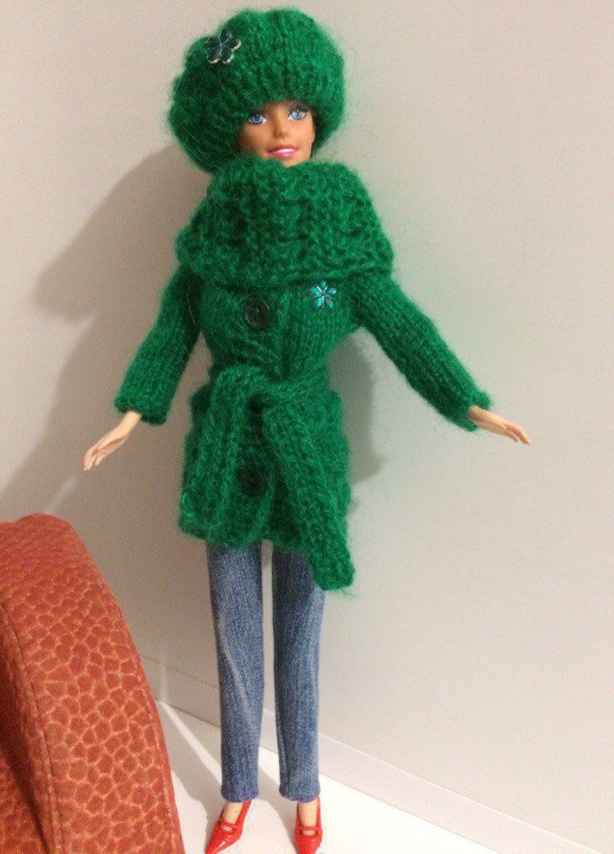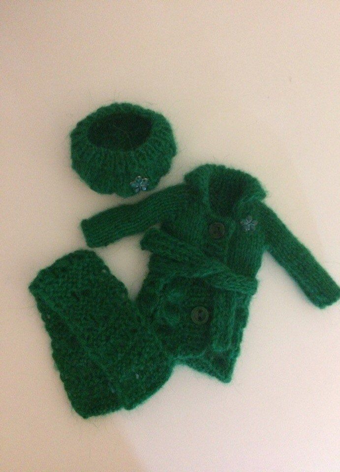 одежда для куклы, одежда для кукол, вязаный кардиган, вязание спицами, вязаный комплект, темно-зеленый