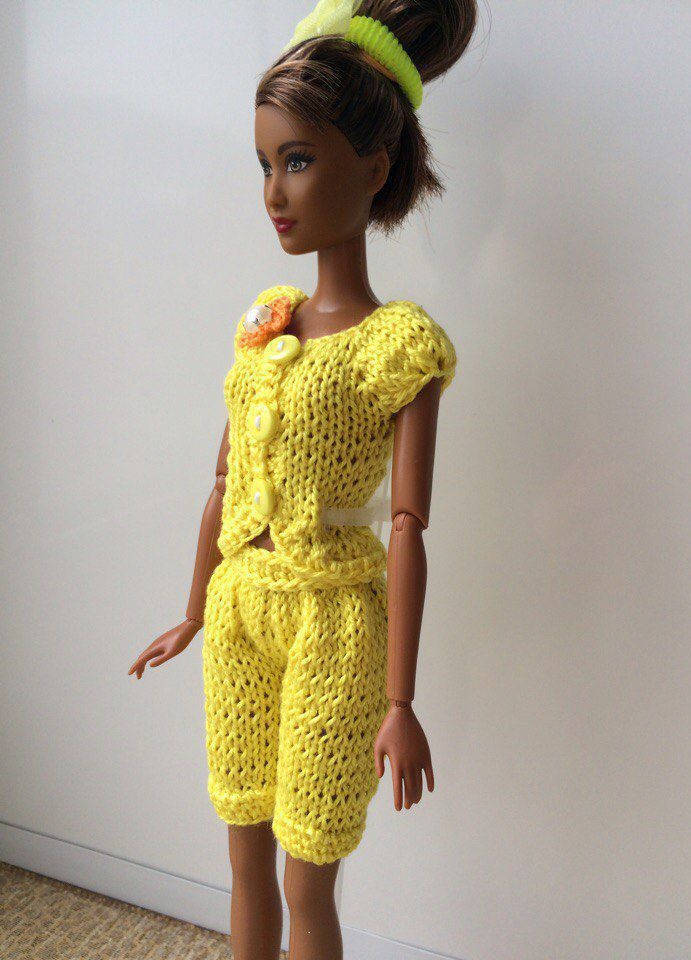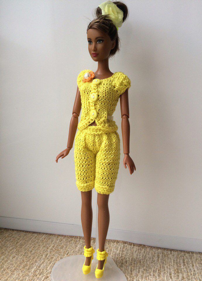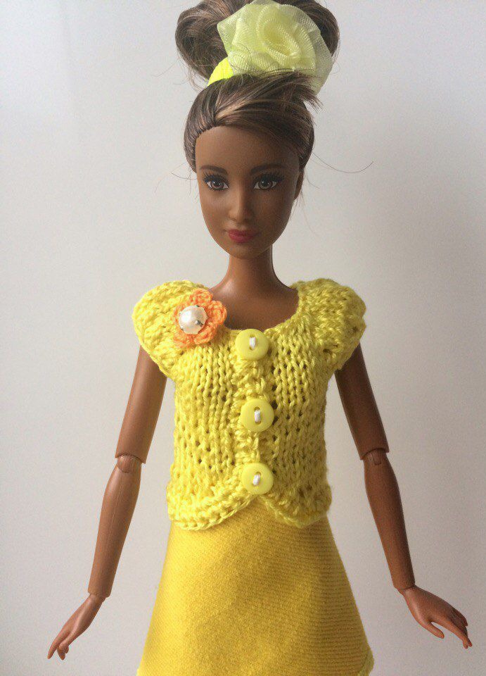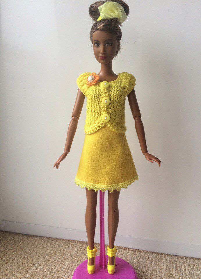 желтый, одежда для куклы, одежда для кукол, комплект вязаный, кофта для куклы, костюм вязаный, комплект для куклы, одежда для барби, костюм для куклы
