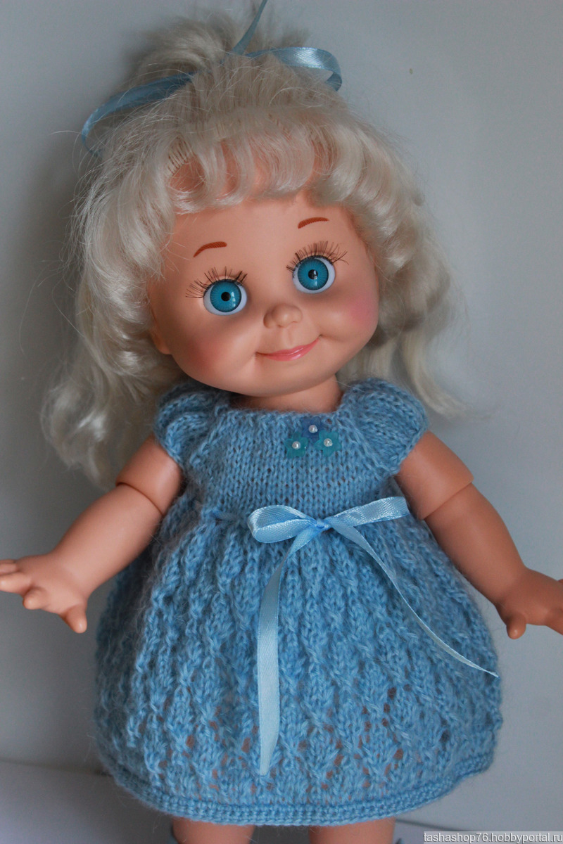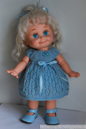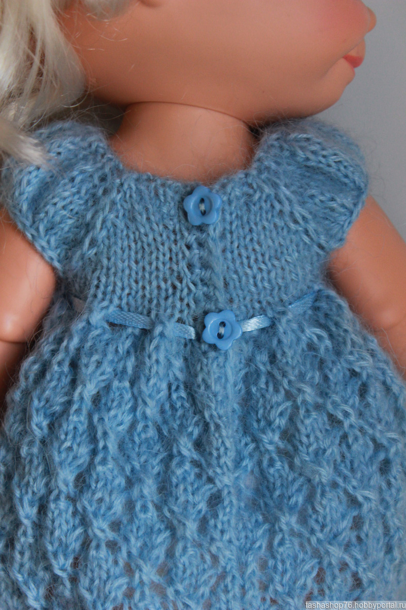 Платье связано из мохера на куколку ростом 32-34 см