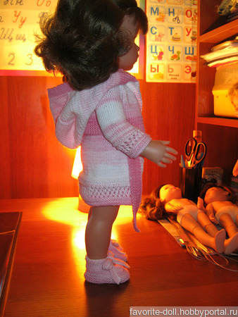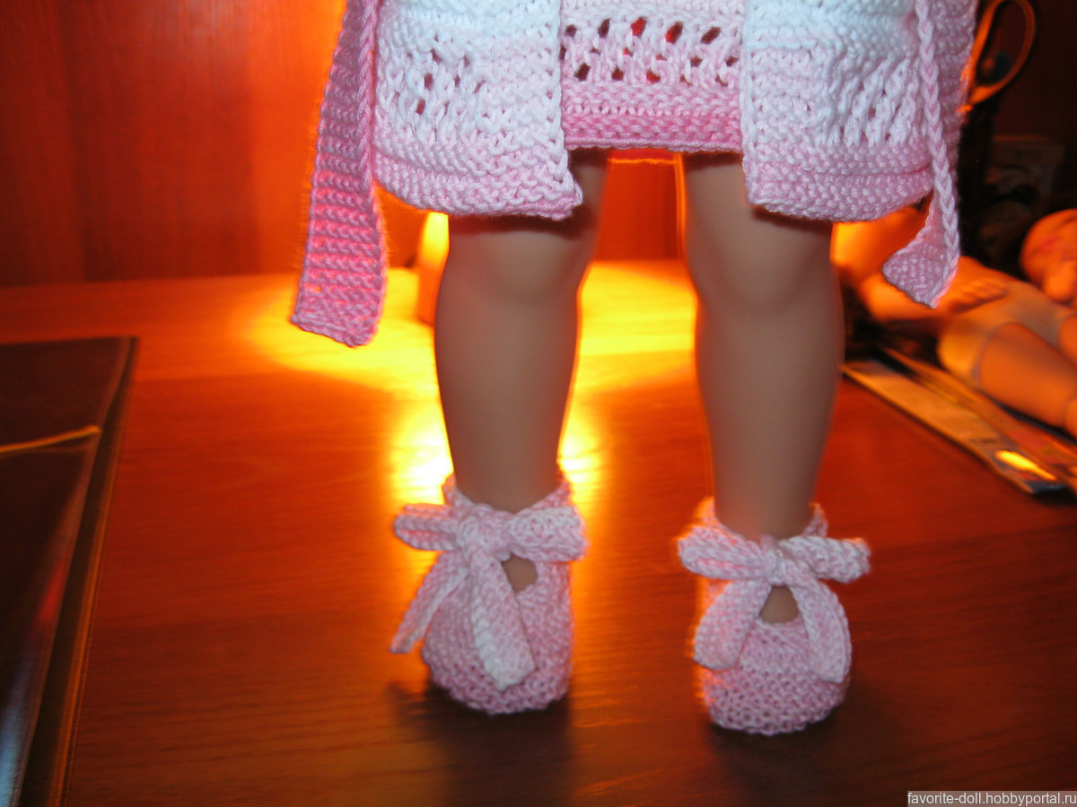 ручная работа, одежда для кукол, вязаное платье, тапочки домашние, комплект для куклы, халат, красивая одежда, сорочка, интересный