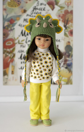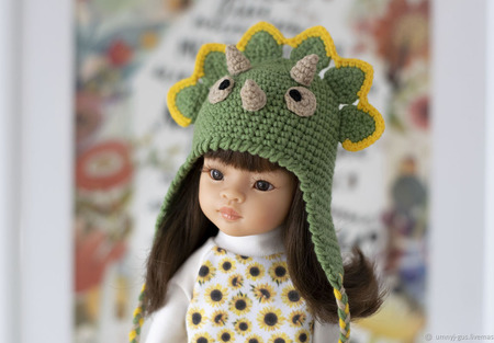 Шапочка ручной работы подойдет игрушкам и куклам с объемом головы 23 см: Paola Reina, Siblies Ruby Red, Les Cheries Corolle, Little Darling, Meadowdolls Dumpling, Minouche Petitcollin и других схожих по размеру.