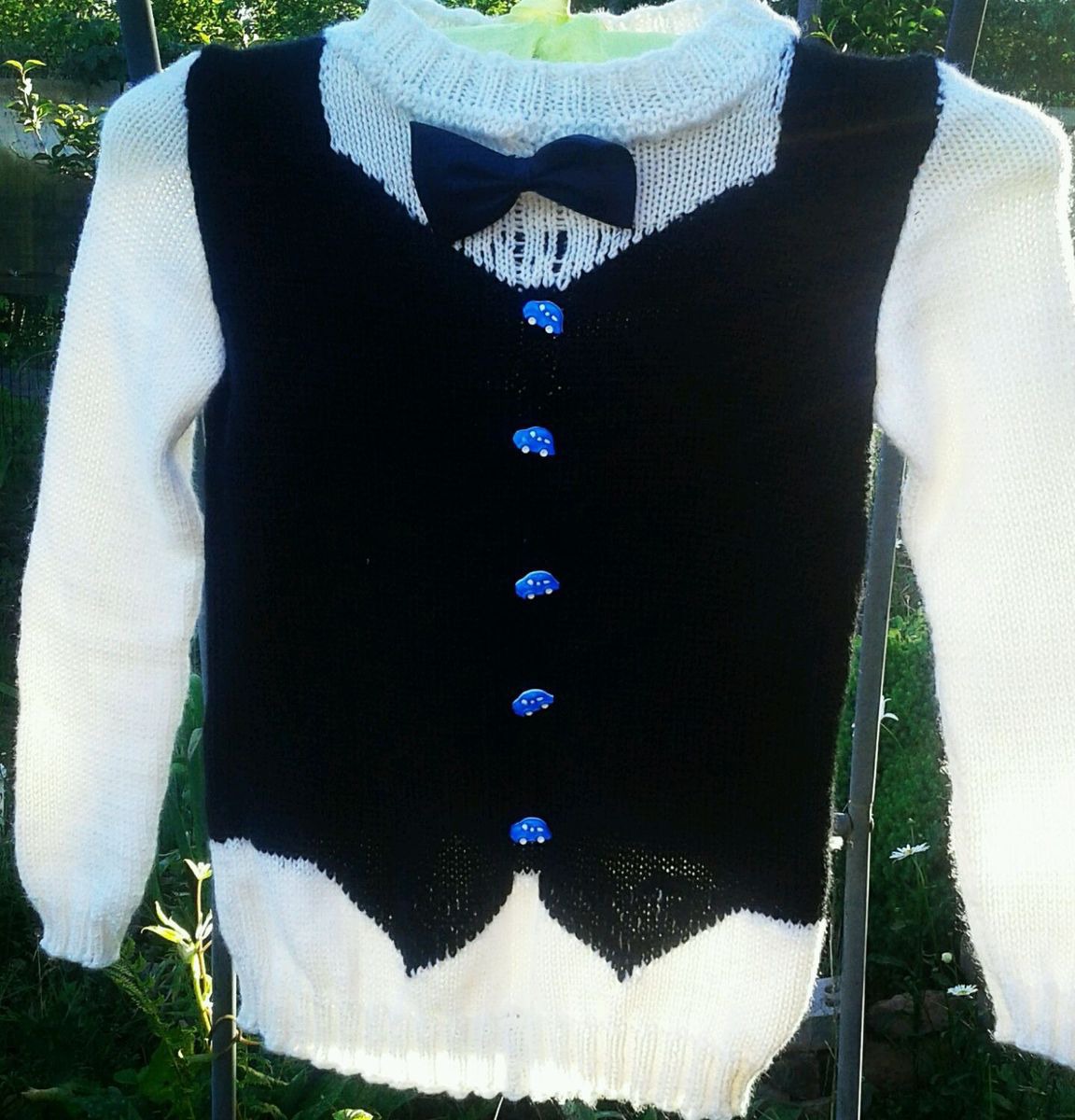 Оригинальный джемпер для мальчика связан на машине. Хорош как на прогулке, так и в школе. На заказ любой размер.