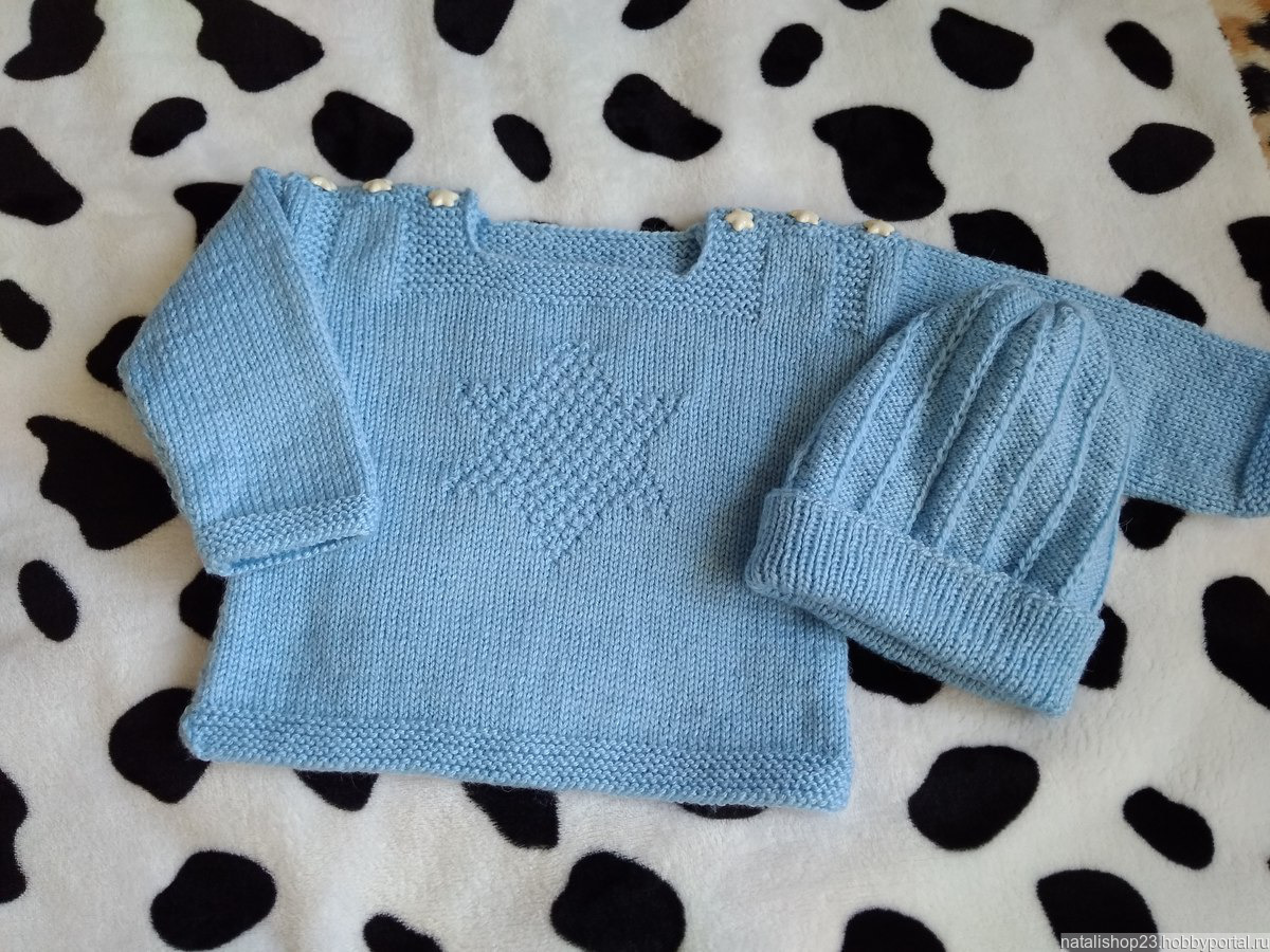 подарок мальчику, подарок малышу, шапка вязаная, джемпер вязаный, шапочка для малыша, шапочка для новорожденных, шапка спицами, шапочка детская, джемпер спицами, джемпер для мальчика, джемпер детский, компелект