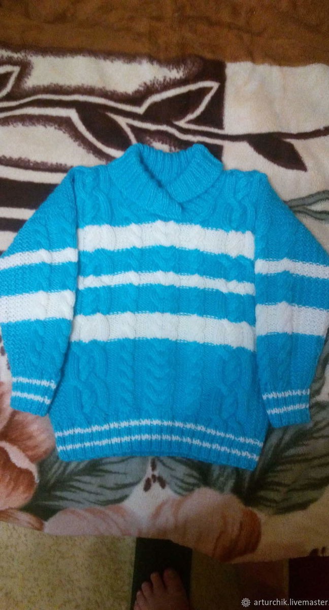 голубой, вязание на заказ, вязание, вязаный свитер, вязание спицами, свитер вязаный, свитер спицами, свитер теплый, вязание для детей, вязание детям, свитер с косами, Свитер ручной работы, вязание мальчикам