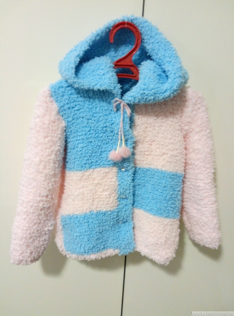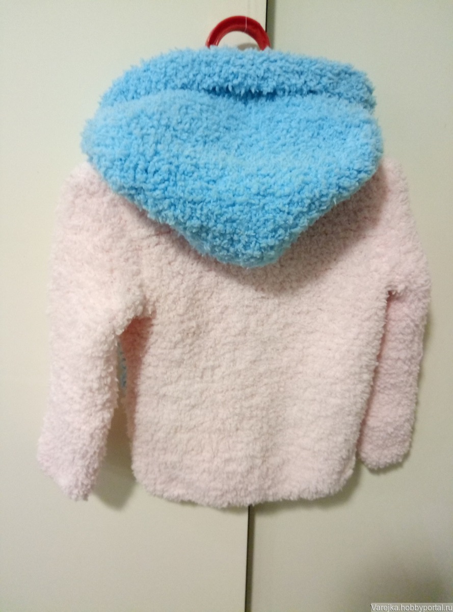 Кофточка с капюшоном для малыша 2-3 лет. Очень мягкое изделие, не вызывающее раздражения кожи ребенка. Удобный капюшон. Кофточка на пуговицах. Длина кофточки - -40 см. длина -35 см.
