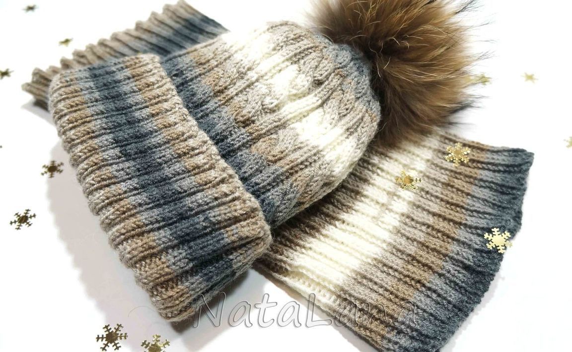 шапка, снуд, комплект для девочки, шапка с помпоном, шапка для ребенка, шапка детская, снуд детский, детский комплект, шапка с меховым помпоном, наталана, комплект аксессуаров детский