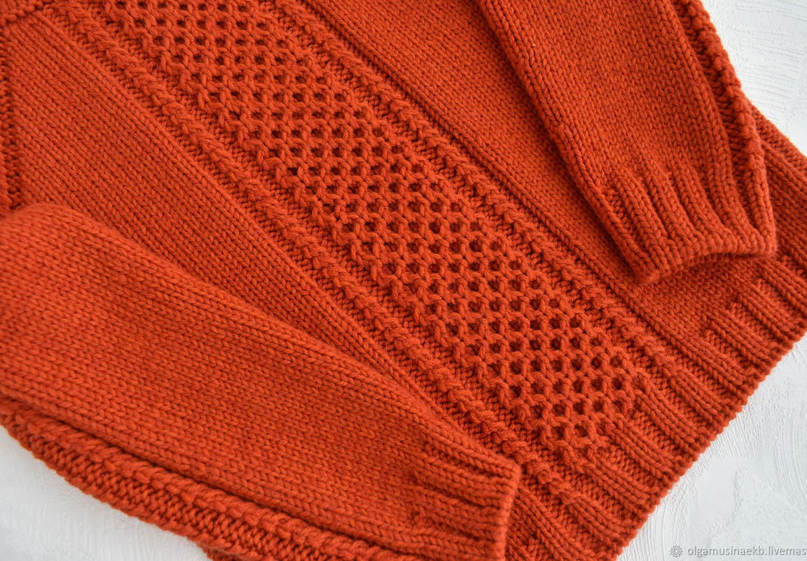 Свитер выполнен спицами из качественного итальянского мериноса.