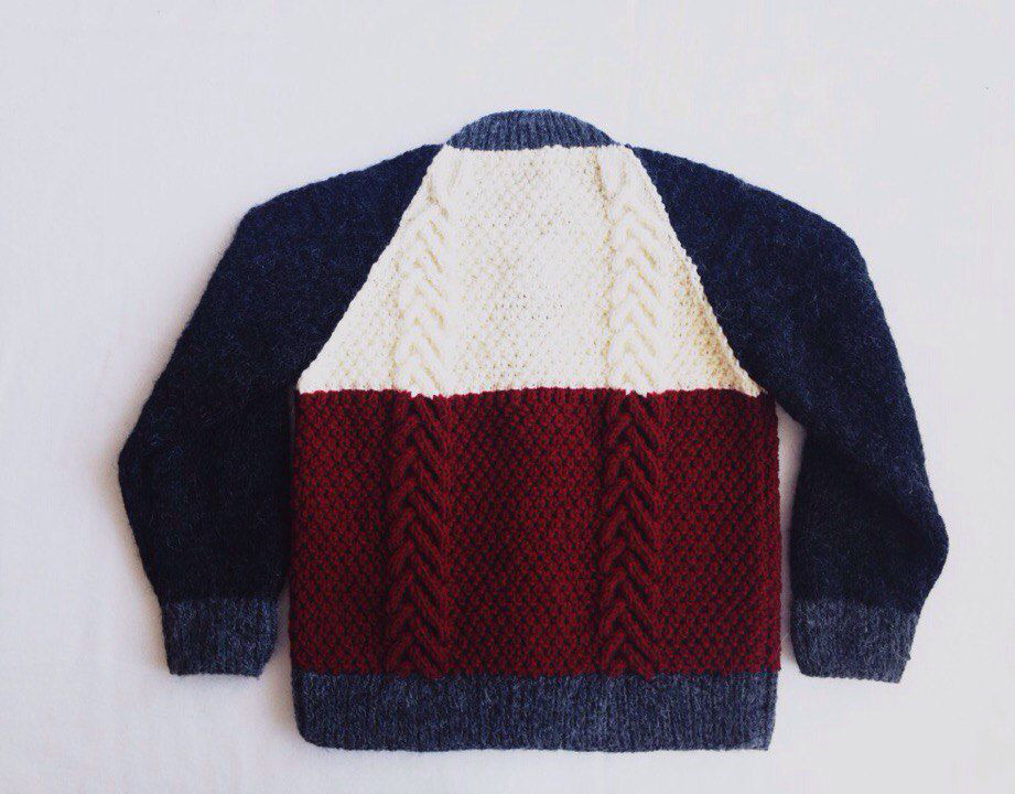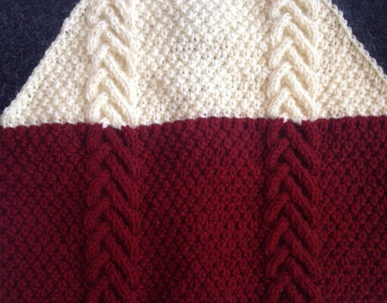 Кофточка связана спицами фасоном реглан из разной по составу и цвету пряжи: серая и черная с добавлением ангоры, бордовая и цвета экрю - шерсть с акрилом.