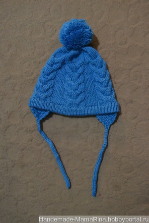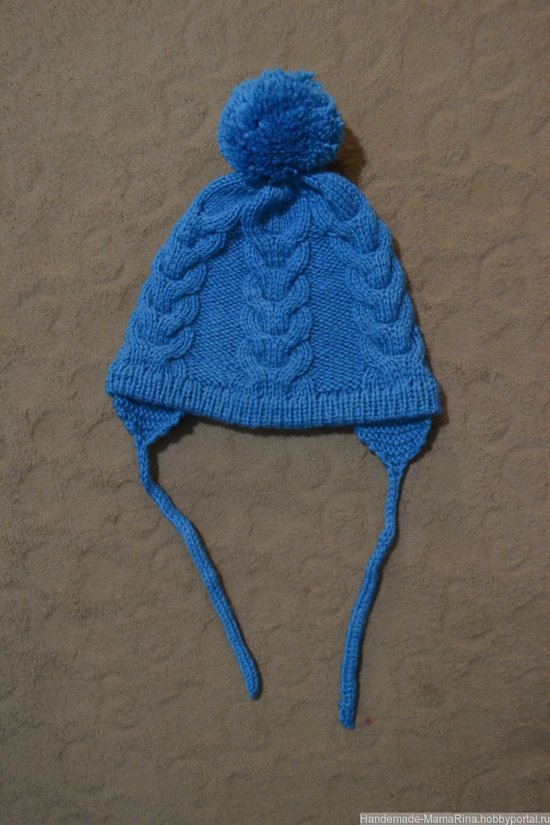 шапка вязаная, шапка с помпоном, шапка детская, шапка спицами, шапка с ушками, шапка детская вязаная