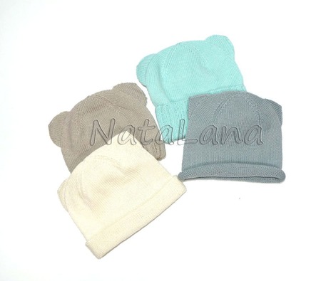 Шапочка с ушками кошечки или медвежонка связана из теплой, приятной на ощупь и легкой, как перышко, мериносовой шерсти.
