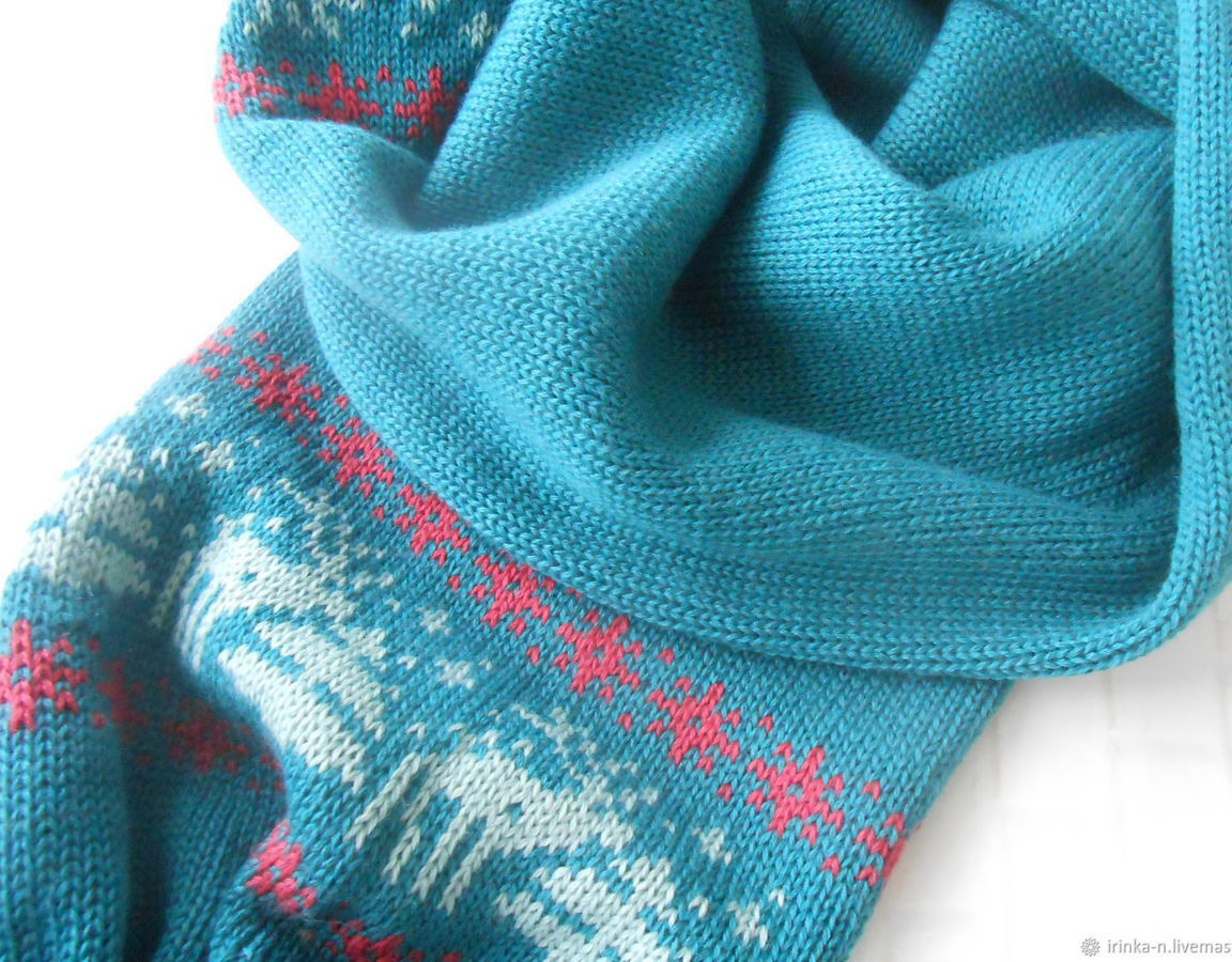 Шарф с зимним орнаментом - оленята , елочки , снежинки