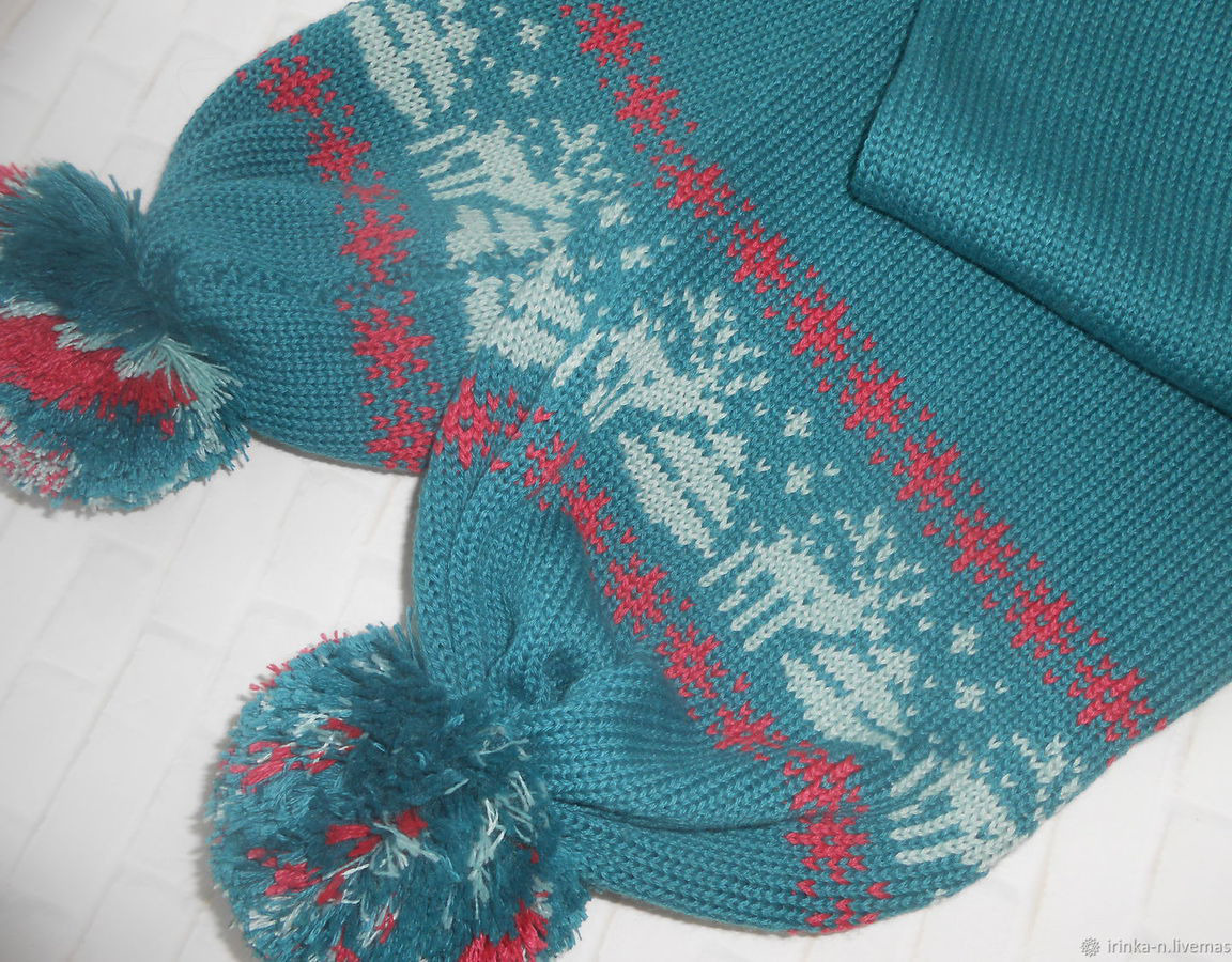 Двойной , теплый детский шарф с орнаментом и помпонами , связан из итальянской полушерстяной пряжи - 50 % меринос , 50 % низкопиллингуемый акрил .