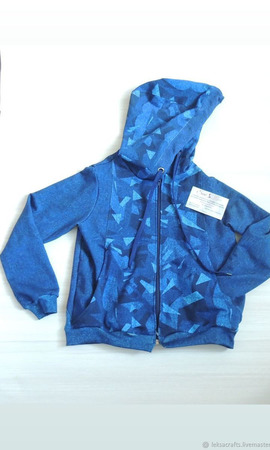 толстовка сшита из футера с лайкрой. оригинальное комбинирование тканей в виде имитации жилета. Модель подойдет как для мальчика так и для девочки.
