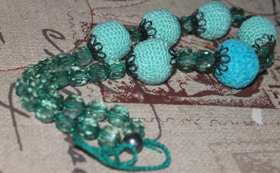 бирюзовый, бусы, подарок девушке, подарок женщине, для детей, дети, для мам и малышей, 100% хлопок, детская одежда, детская игрушка, слингобусы, 100% ручная работа, слингобусы мамабусы, для мамы и дочки, для мамы и малыша, Ирис, вязаные бусы, летние бусы, легкие бусы, для мамы и сына