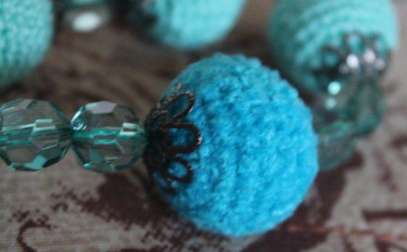 Бусы вязаные. Пенопластовя бусина обвязана 100%хлопком, ирисом. Что делает бусы очень лёгкими.
