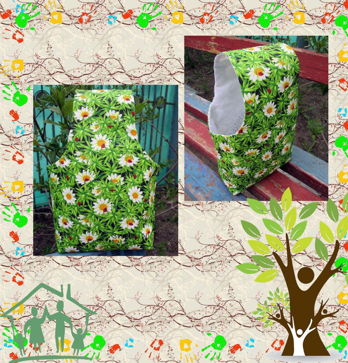 сумочка, зелёный, сумка, ромашки, клубочница, сумка для рукоделия, сумочка для рукоделия, сумочка для вязания, сумка для клубка, сумочка для клубка, клубок, сумка клубочница