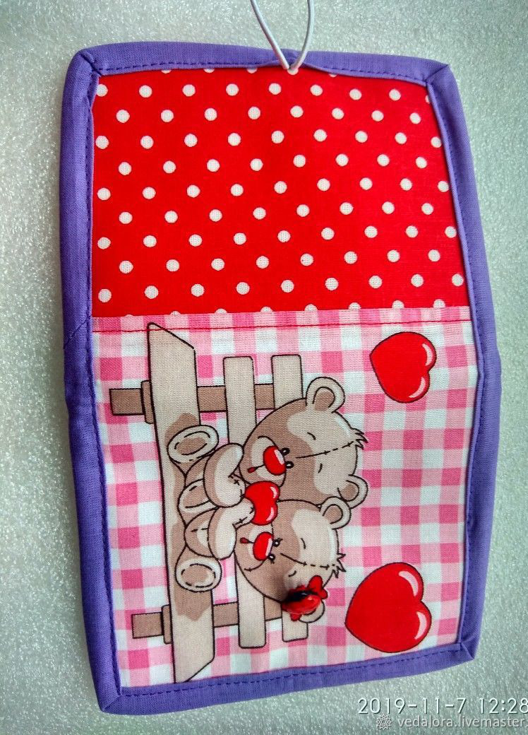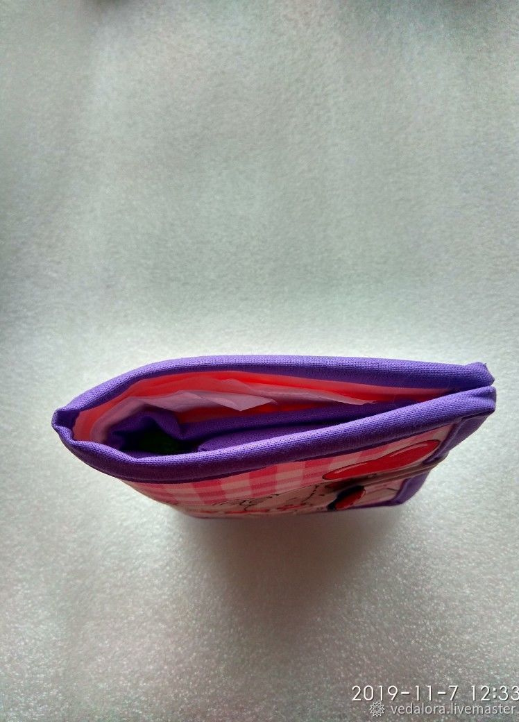 Несессер сшит из ткани с Мишками Тедди продублирован дублирином, серпянкой. Закрывается на пуговку - божья коровка, шляпной резинкой.