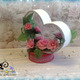 Высота 21,5см, диаметр дна 11,5см, диаметр роз от 9 до 3,5см, размер сердца 16 на 21,5см