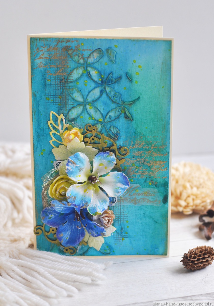 бирюзовый, открытка, бирюзовый цвет, открытка ручной работы, открытка на все случаи, открытка для женщины, открытка для девушки, открытка для мамы, конверт для денег, конверт ручной работы