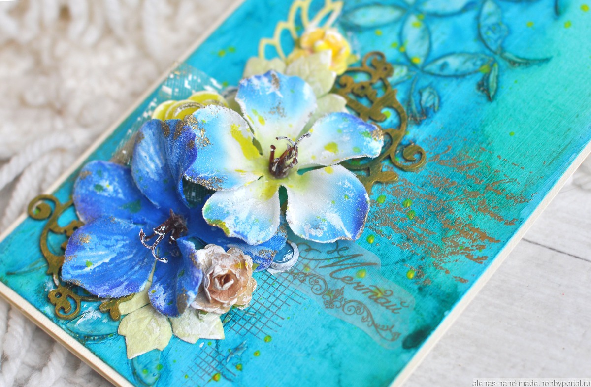 акриловая краска, штампинг, цветы бумажные, эмбоссинг, текстурная паста, калька, чипборд, цветы из ткани, бумага для акварели