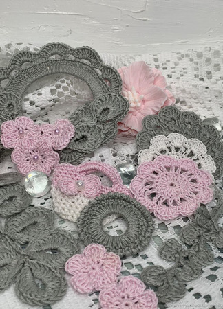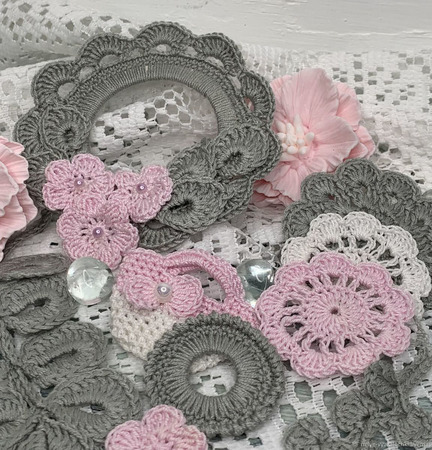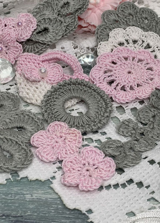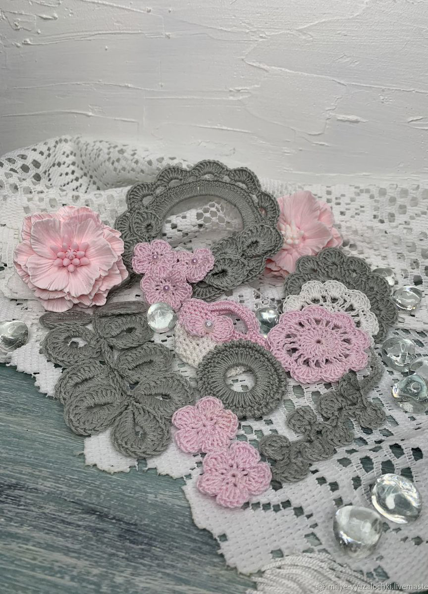 вязание крючком, скрапбукинг, свадебный декор, крошечный декор, вязаный декор для скрапа, вязалочки, свадебный декор для альбома